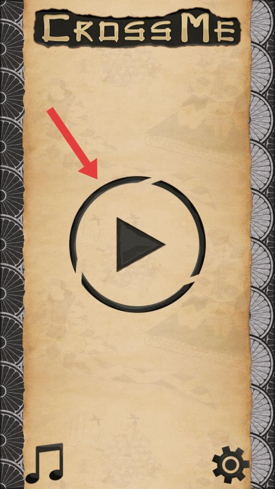1、進入游戲,能看到帶有CrossMe字樣的界面,點擊中間帶有三角形的圓形按鈕,即可開啟游戲。