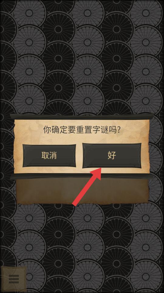 3、若想重新開始當前字謎,會彈出你確定要重置字謎嗎的提示,此時點擊【好】,就能重置字謎。
