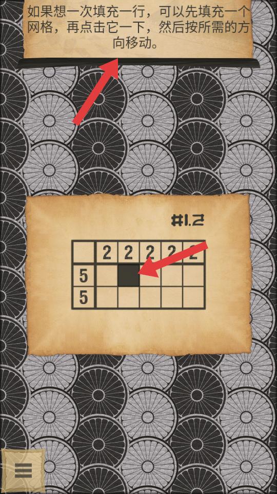 4、游戲中,若想一次填充一行,可先填充一個網格,再點擊它一下,然后按所需方向移動,按照這樣的規則來完成字謎填充。