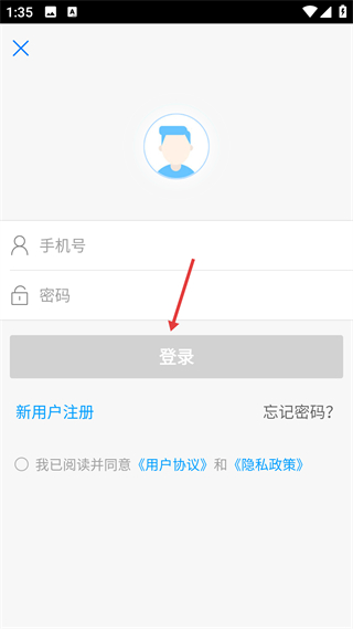1、進入無線梅州的登錄界面,需輸入手機號和密碼,勾選用戶協議和隱私政策后,點擊登錄按鈕完成登錄,進入應用主界面。