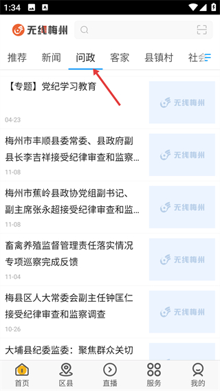 3、在首頁切換到問政板塊,能查看黨紀學習教育等相關內容,了解本地政務動態及監督類資訊,獲取政務相關信息。