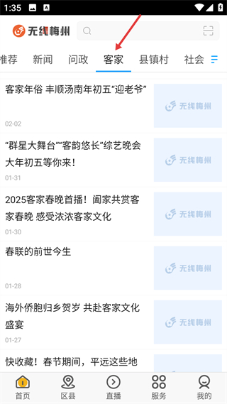 4、切換到客家板塊,可查看客家年俗、客家春晚等內容,了解本地客家文化相關的活動與資訊,感受客家文化氛圍。
