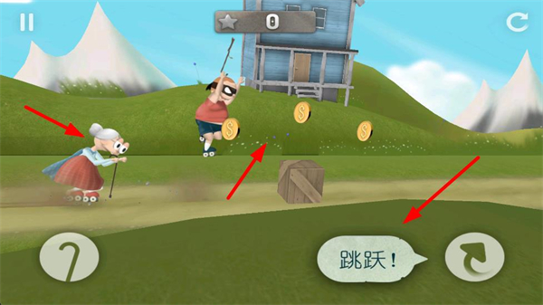 1、點擊走起開啟挑戰第一關,進入奶奶跑酷的冒險之旅,為搶奪蘋果和躲避小偷做好準備。