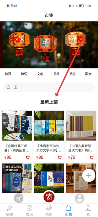3、點擊市集選項進入市集頁面,可查看最新上架的書籍商品,了解書籍價格等信息。