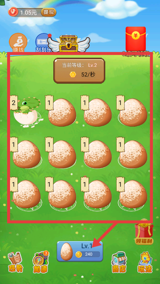 2、可先大量購買并孵化龍蛋,積累足夠數量后,通過合成提升恐龍等級,這樣能加快金幣獲取速度,進而更快購買更多龍蛋或恐龍,形成升級的良性循環。
