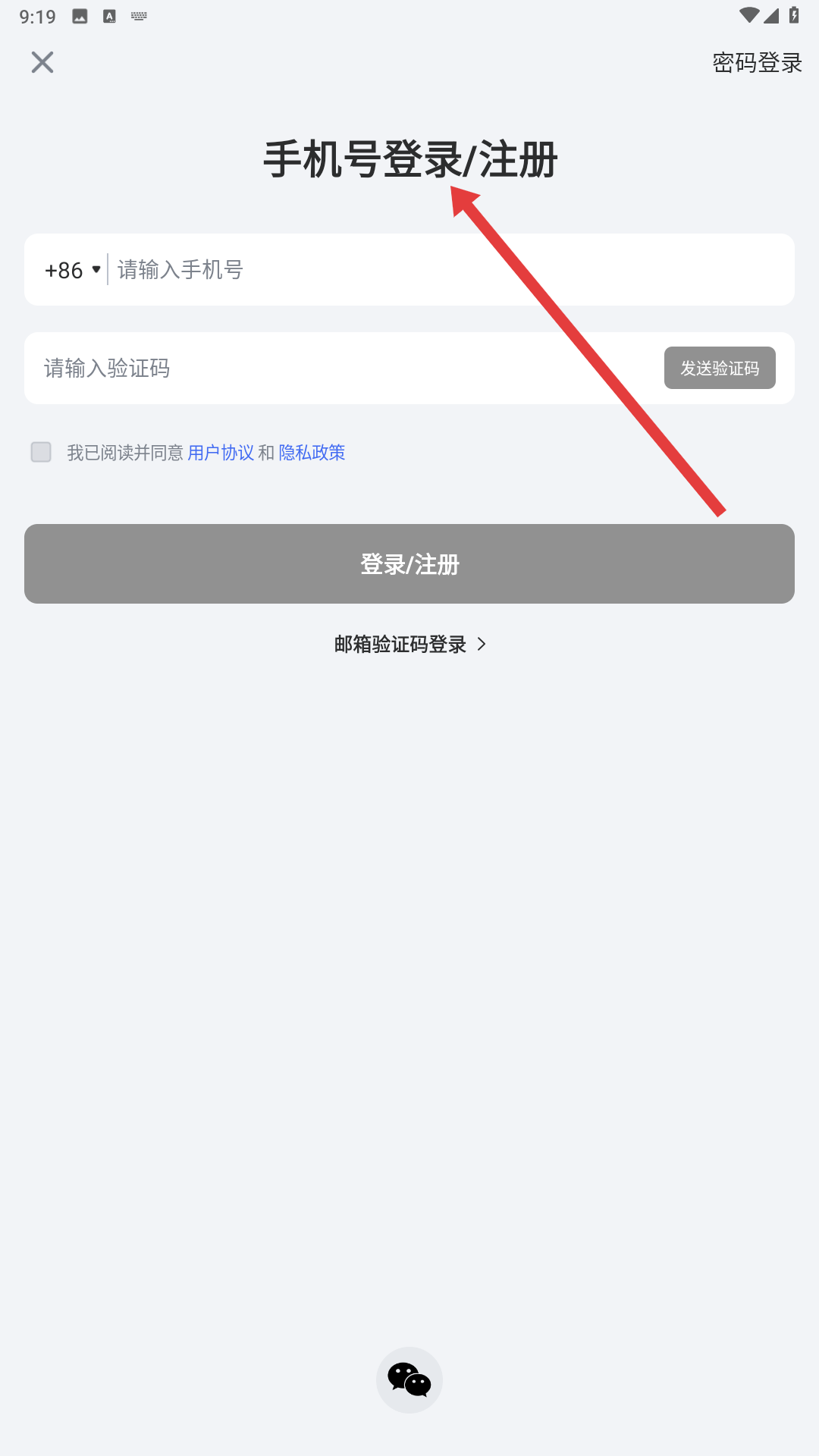 2、手機號登錄、注冊界面,輸入手機號和驗證碼,勾選用戶協議和隱私政策后,點擊登錄、注冊按鈕可完成賬號登錄或注冊。