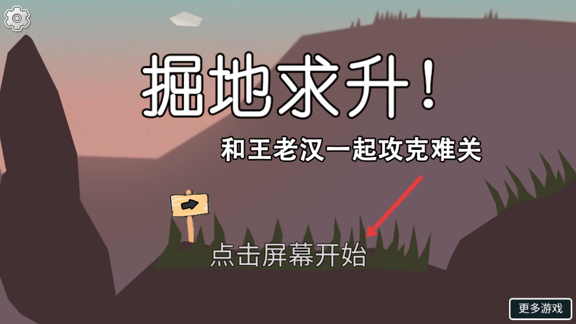 1、游戲開始界面顯示掘地求,和王老漢一起攻克難關,點擊屏幕即可開始游戲,開啟操控角色利用工具攀爬的挑戰,準備好應對地形難題。