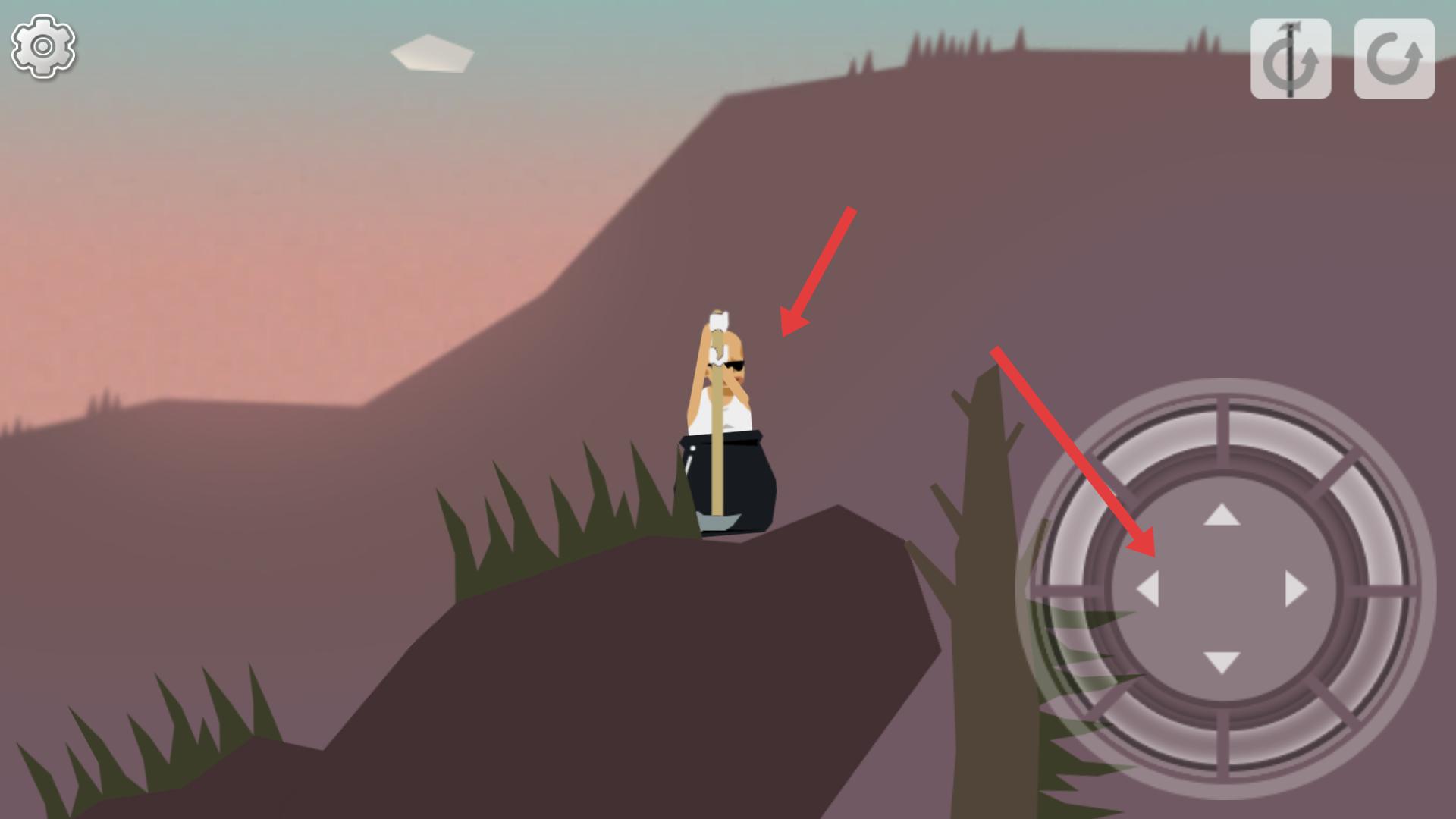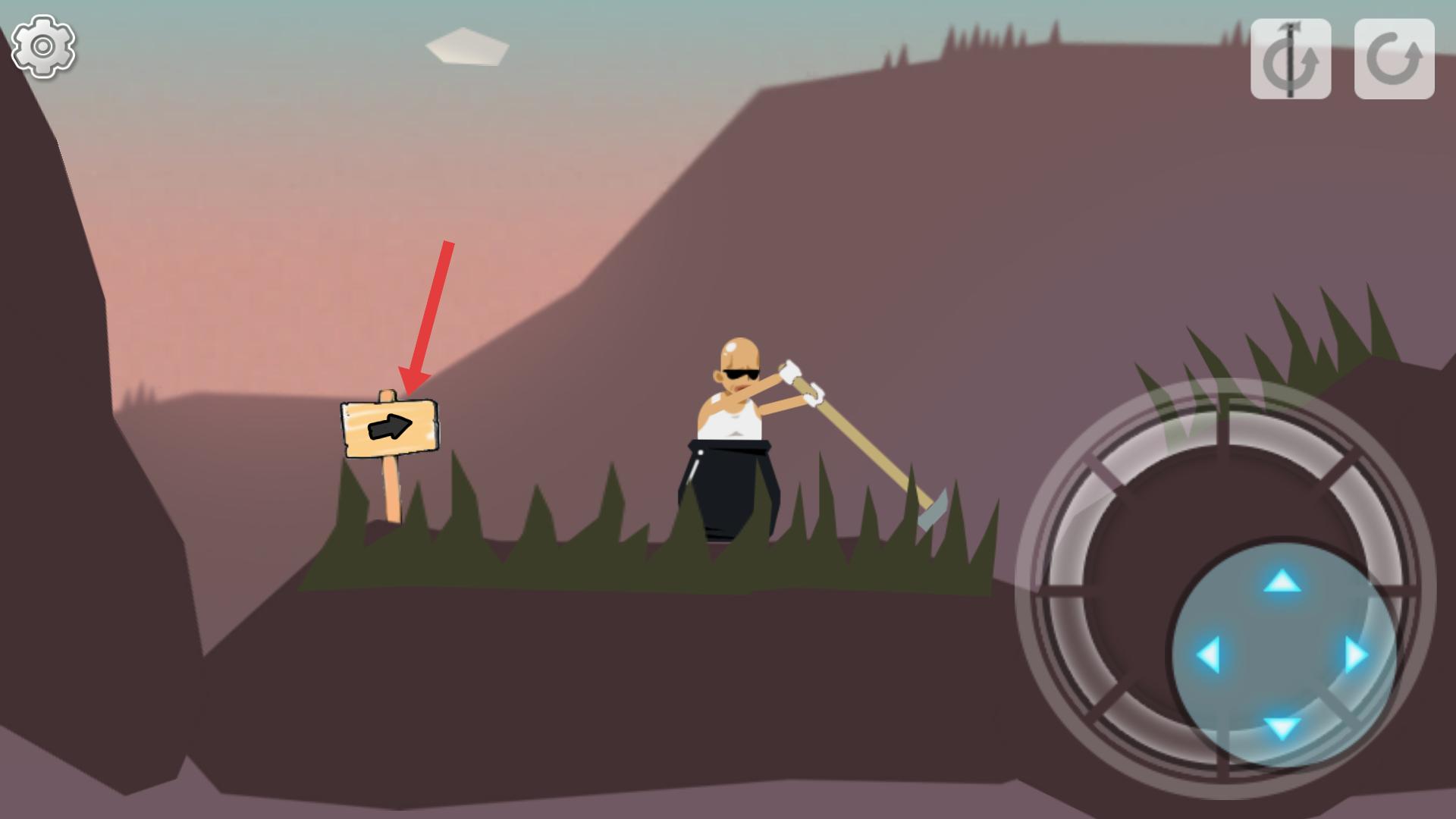 2、進入游戲發現角色身處巖石地形,右側有方向控制輪盤,通過操作輪盤,控制角色揮動工具,借助工具的力量在巖石上移動,朝著目標方向前進。