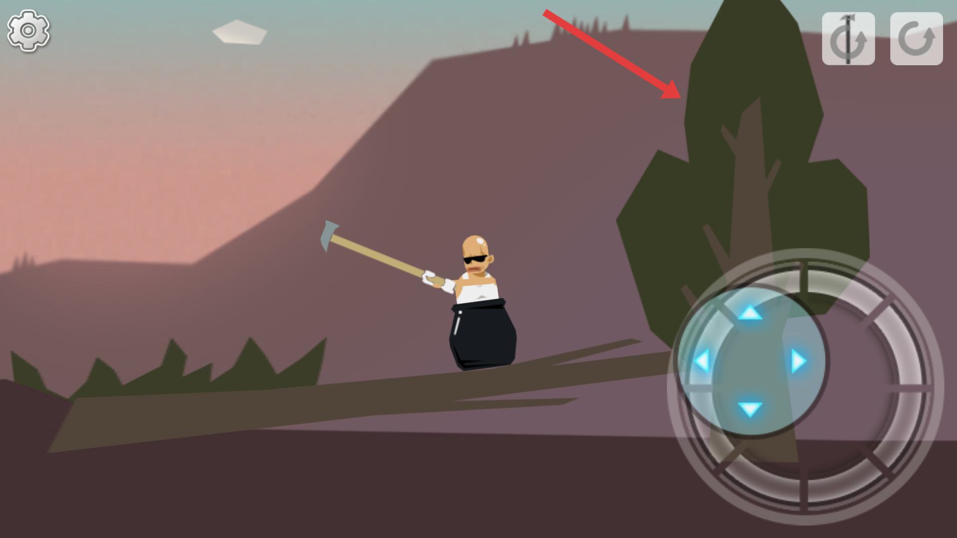 4、角色來到樹木旁的地形,繼續操作右側輪盤,精準控制工具揮動,借助工具與地形的交互,保持平衡,順利通過樹木所在的路段,持續攀爬。