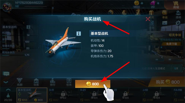 3、消耗金幣購買基本型戰機,提升戰機的機動性、裝甲和殺傷力等屬性,優化空戰戰力配置。