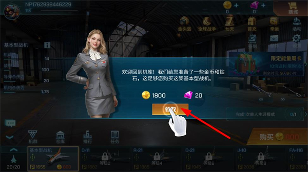 2、領取金幣和鉆石獎勵,積累資源,用于購買戰機或升級裝備,增強戰機的空戰實力。