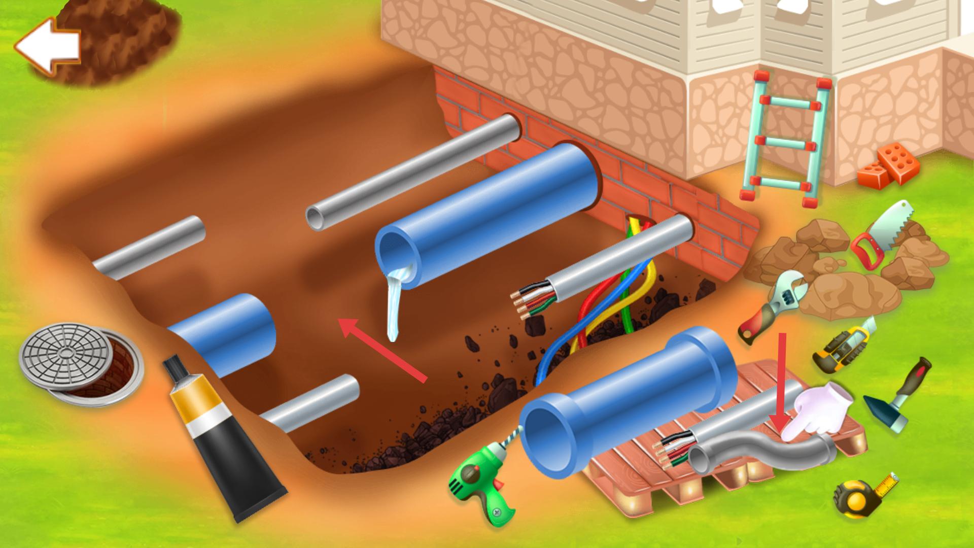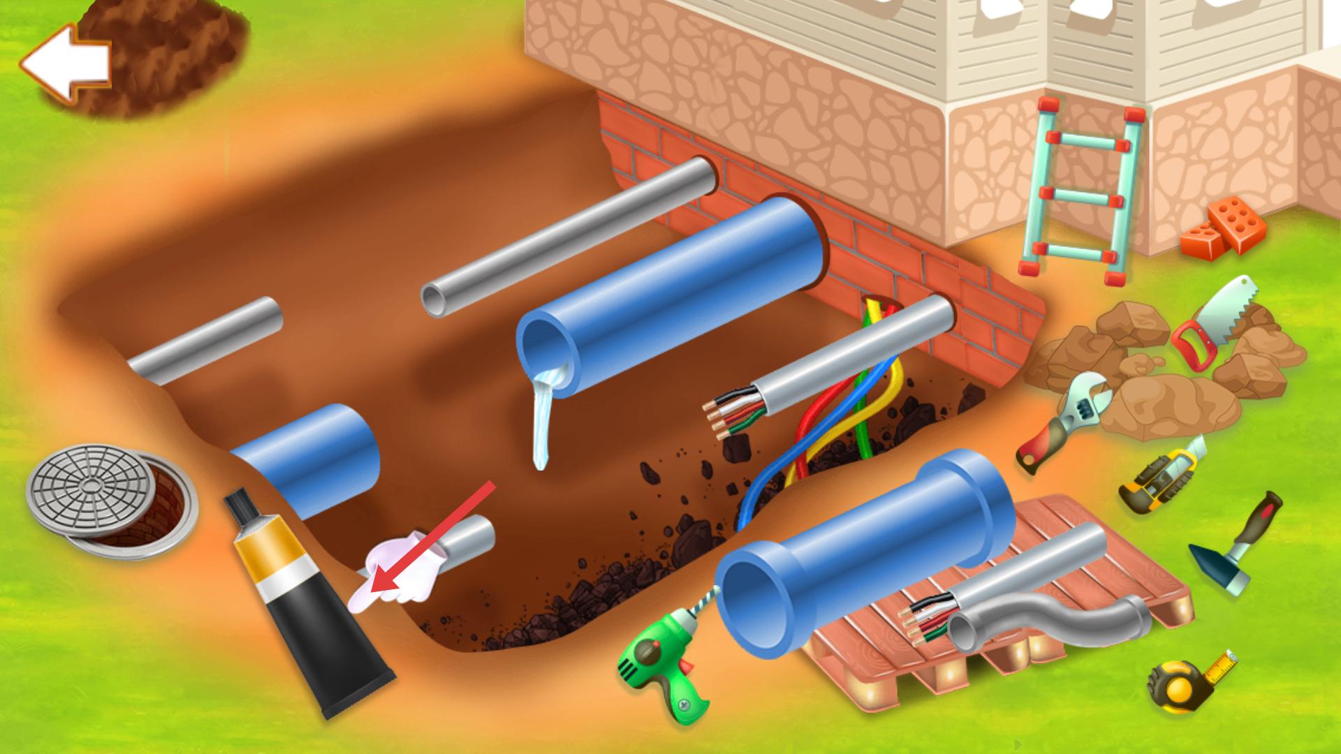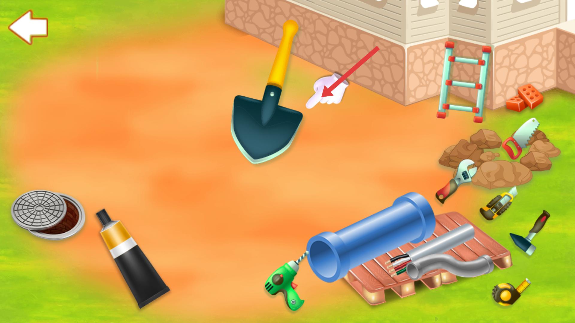 2、進入場景顯示有鏟子、鉆頭等工具,根據提示,先使用鏟子挖掘地面,為后續鋪設管道等施工步驟做準備,熟悉工具的使用方法。
