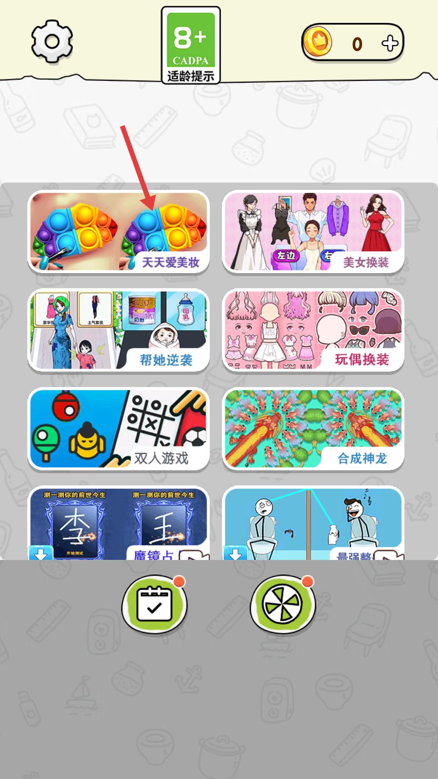 1、進入主界面,看到有多個不同選項,選擇天天愛美妝,進入相關操作場景,準備開始后續互動。