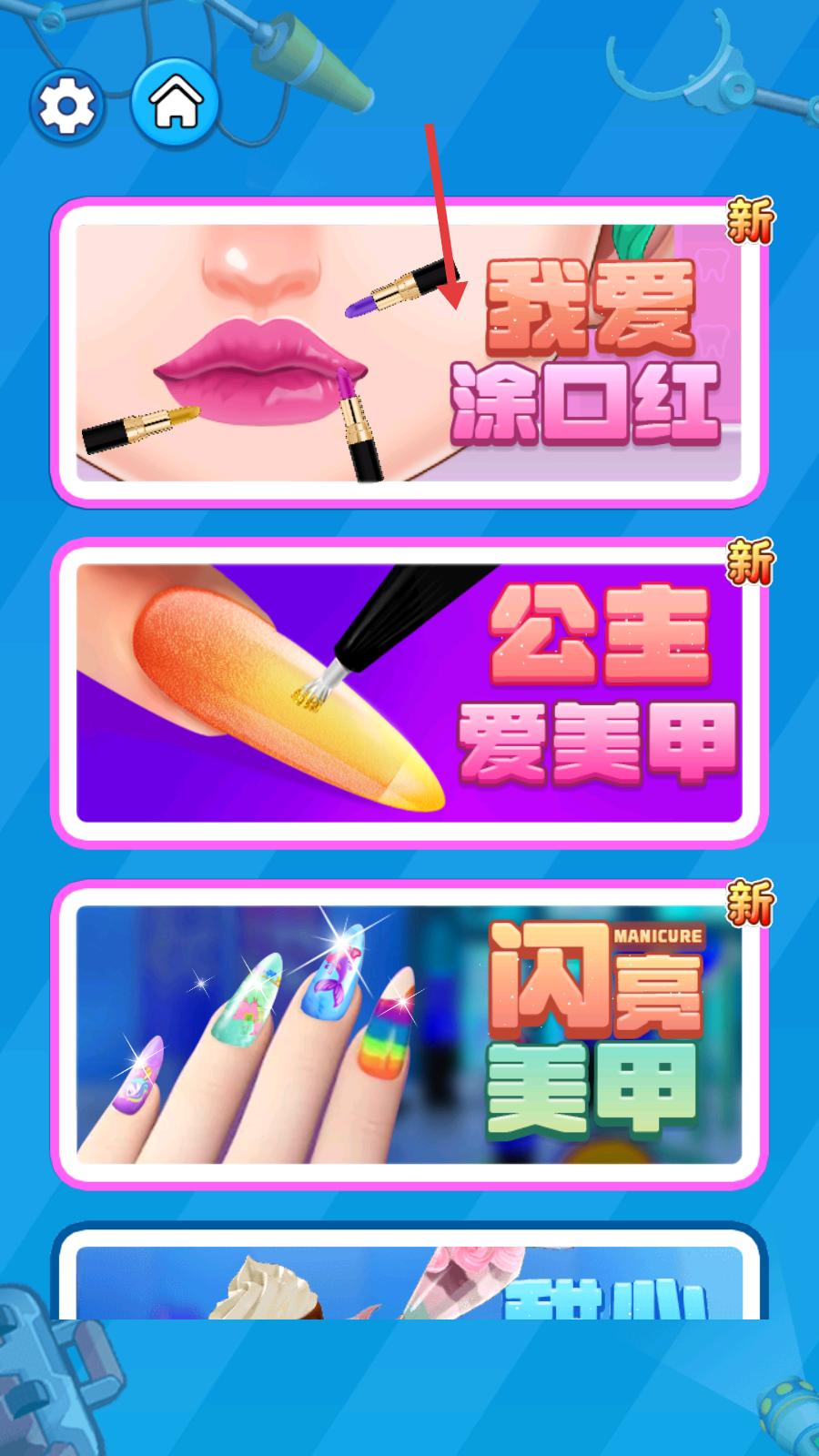 2、進入天天愛美妝后,在眾多選項里選擇我愛涂口紅,進入涂口紅的具體操作環節,開啟美妝相關體驗。