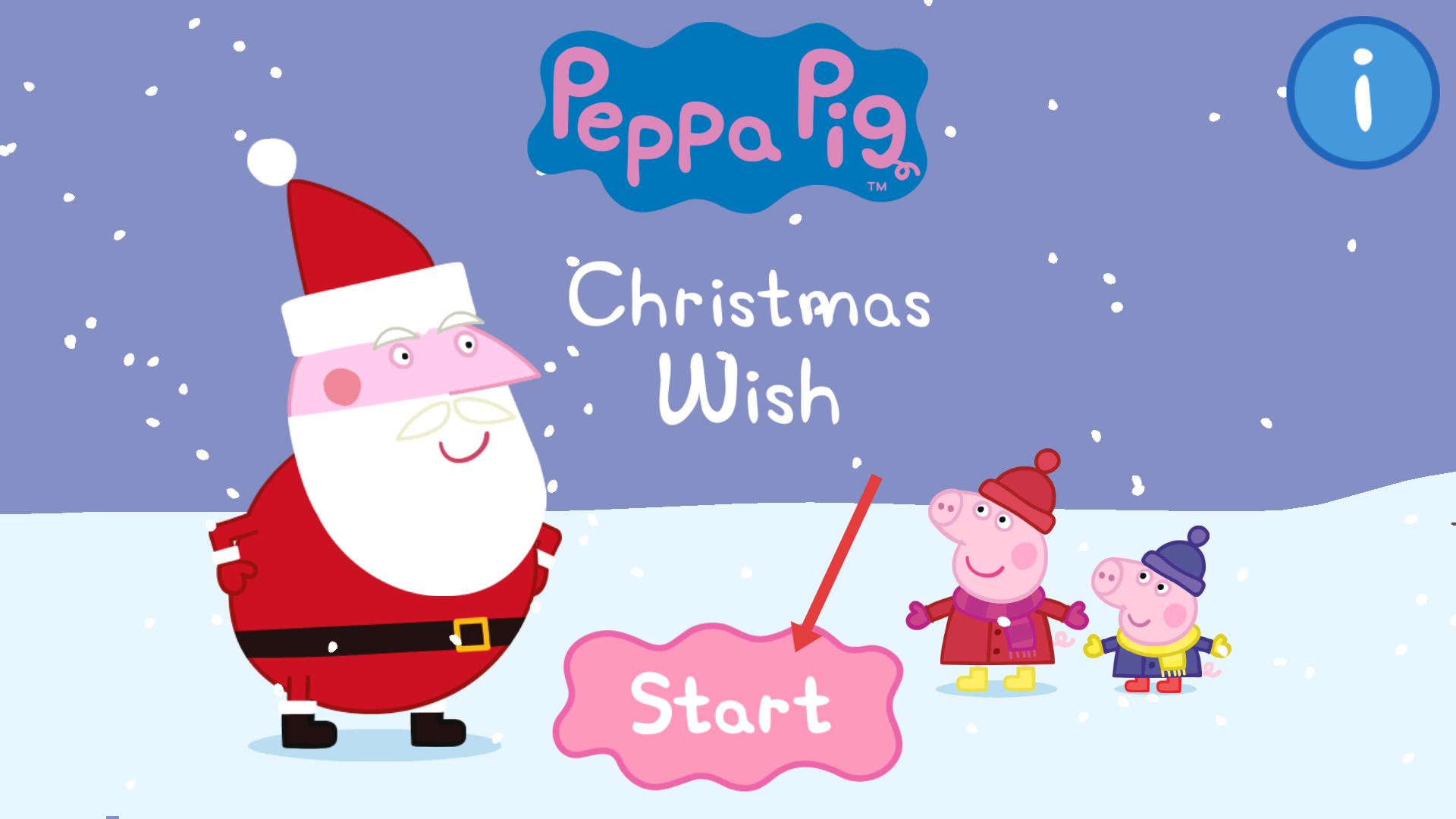 1、游戲開始界面有圣誕老人和佩奇、喬治,點擊粉色Start按鈕,開啟小豬佩奇圣誕愿望的游戲,進入圣誕主題的冒險。