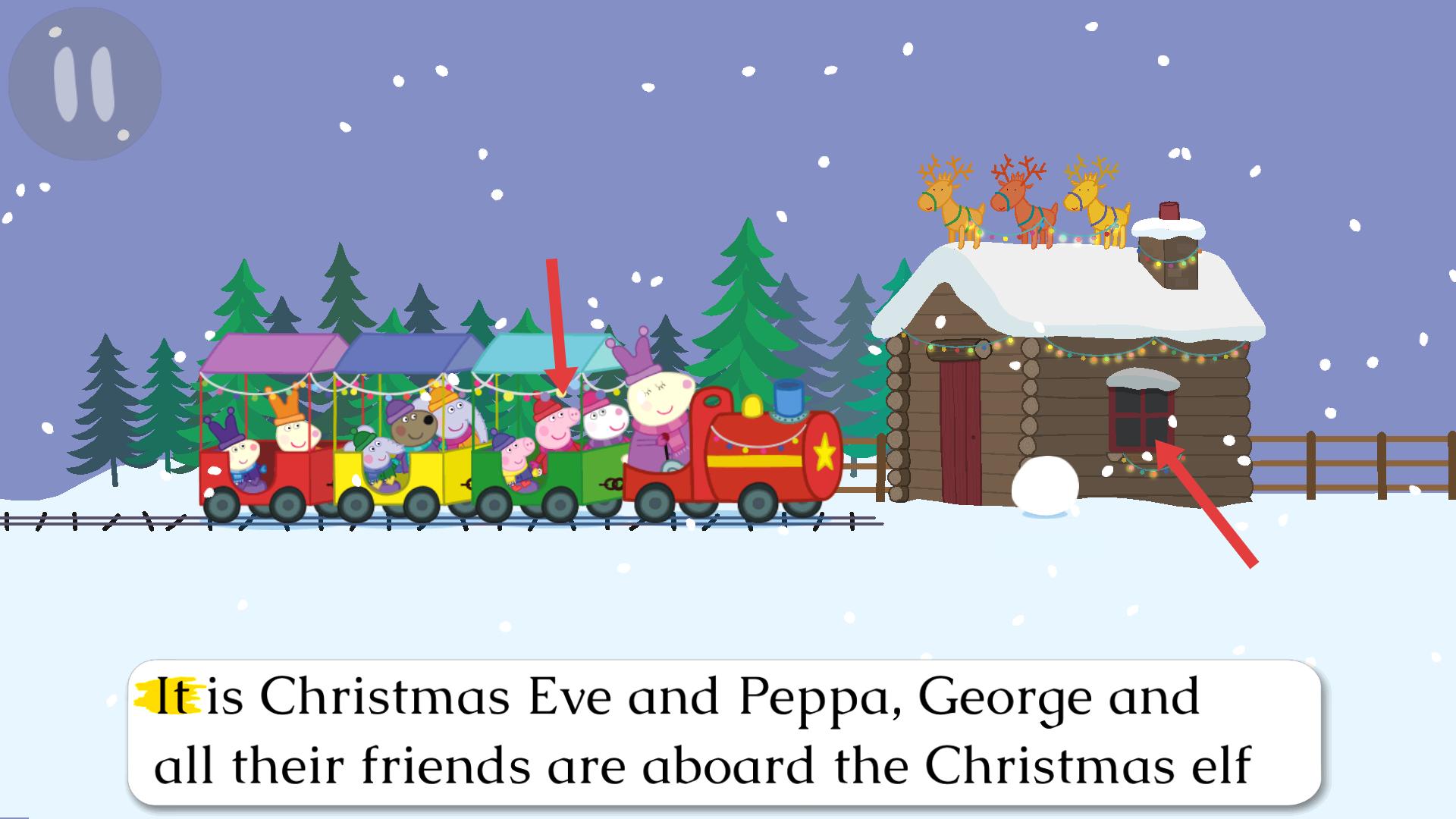 2、平安夜,佩奇、喬治和朋友們乘坐圣誕精靈火車,沿著軌道前行,途中會經過裝飾著彩燈的小木屋等場景,感受圣誕氛圍,推進游戲劇情。