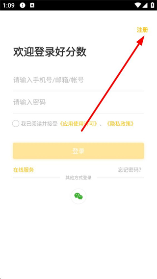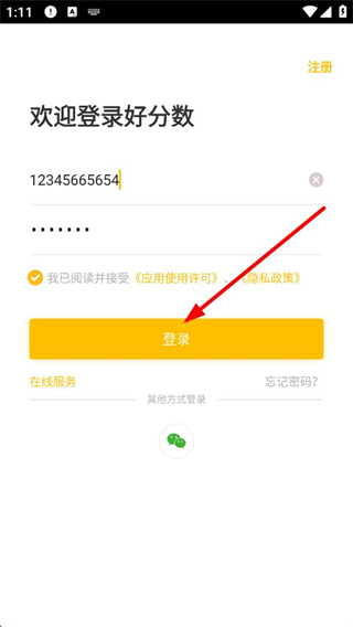 4、登錄界面填好手機號和密碼,確認勾選相關內容后,點擊登錄按鈕,就能嘗試進入好分數應用,開啟后續的相關使用流程。