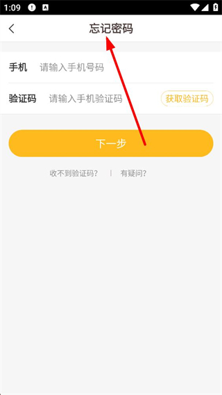 2、若忘記密碼,點擊對應按鈕進入忘記密碼界面,輸入手機號獲取驗證碼,填寫后點擊下一步,就能繼續進行密碼找回的操作流程。