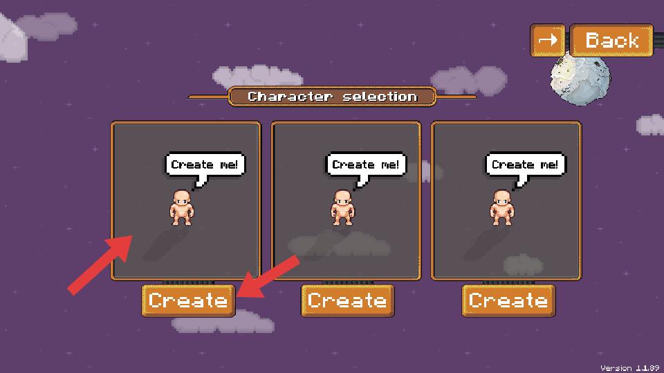 2、在角色選擇界面,有三個可創建角色的選項,選擇其中一個選項,點擊下方的Create按鈕,進入角色創建界面。
