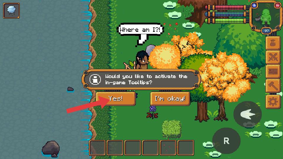 4、進入游戲場景后,看到游戲界面的提示,點擊Yes按鈕,開啟游戲內提示,然后開始在場景中探索,進行生存挑戰。