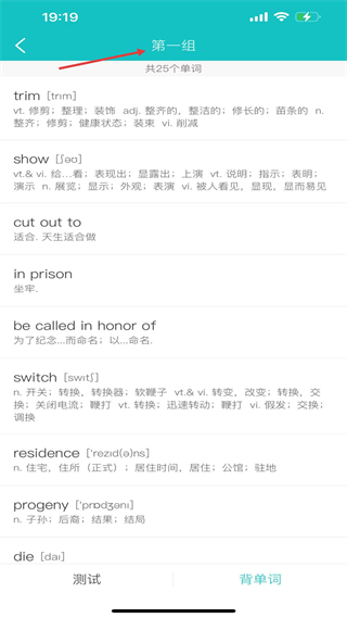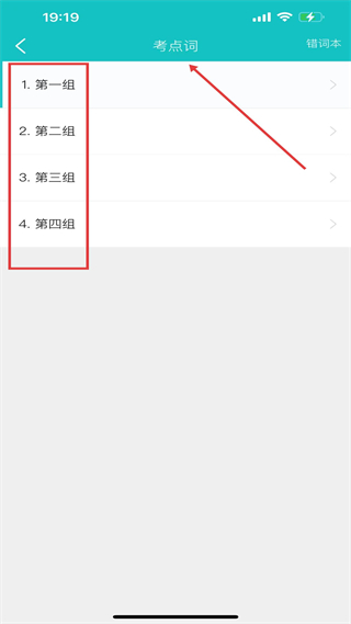 3、考點詞分組頁將詞匯劃分為多組,適配分批次學習記憶,設有錯詞本功能,助力針對性鞏固薄弱詞匯。