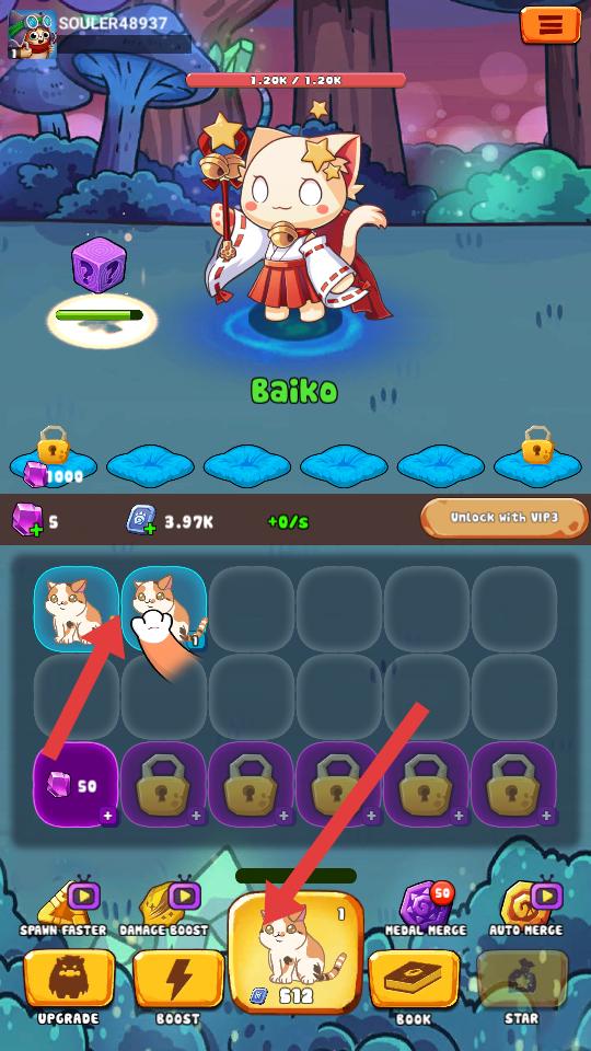 2、在游戲主場景,可將相同的貓咪進行合成,合成后能解鎖新的貓咪形象,還能獲取相應的資源,不斷豐富貓咪陣容。
