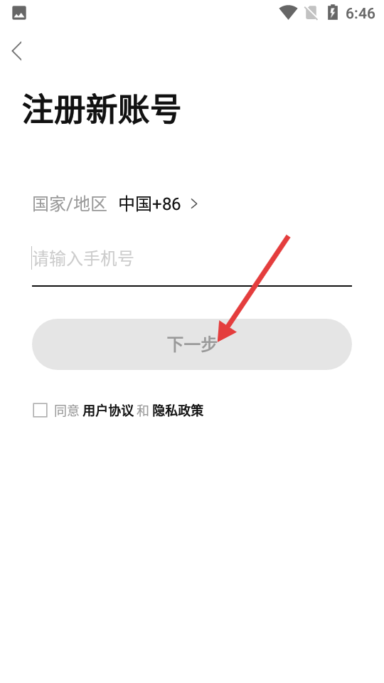 3、在注冊新賬號頁面,首先選擇國家地區,然后在下方的輸入框中輸入你的手機號,最后點擊下一步按鈕,按照提示完成后續的注冊操作,即可成功注冊APP的賬號。