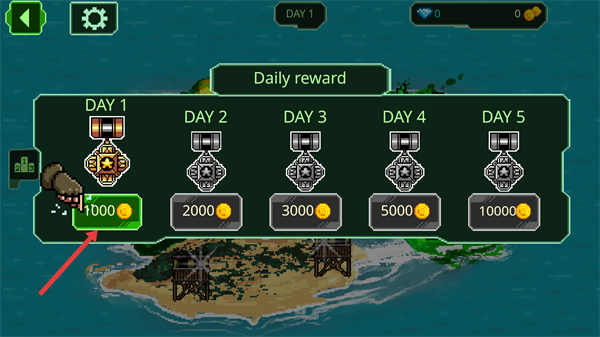 1、能看到每日獎勵界面,從第一天到第五天分別有不同數量金幣獎勵,點擊對應天數的獎勵按鈕,就能領取金幣。
