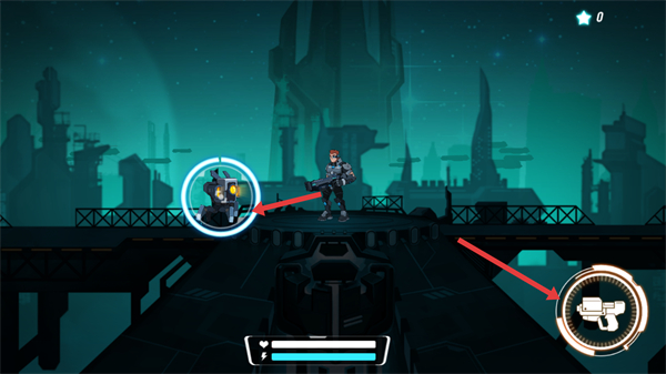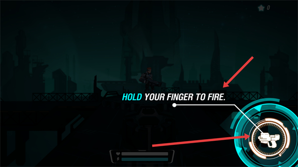 1、在初始界面看到提示將手置于槍上,按住右側槍械按鈕,就能讓角色射擊,開啟戰斗。