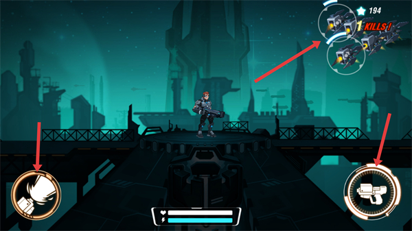 4、后續會遇到飛行類敵人,除了用槍械射擊,還可點擊左側特殊攻擊按鈕,發動特殊攻擊,快速消滅敵人。