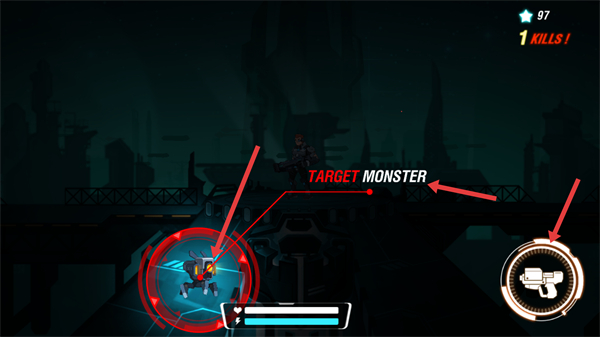 3、當出現有標識的怪物時,集中火力,按住槍械按鈕持續射擊,將其消滅,能獲得更多積分。