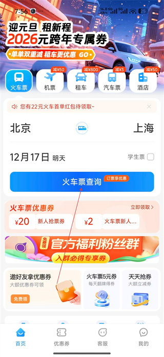 無需在火車站排長隊購票,有了鐵行火車票APP,您可以隨時隨地輕松購票。