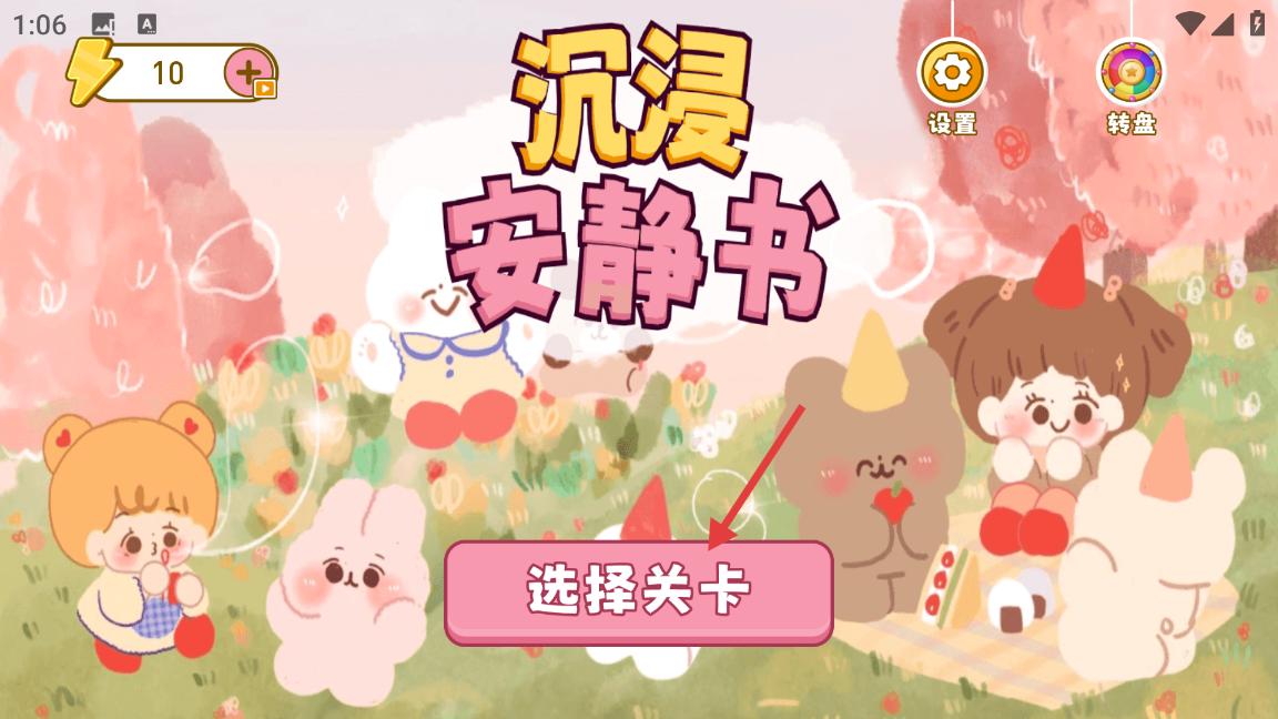 1、游戲初始界面,點擊選擇關卡按鈕,可進入關卡選擇頁面,開啟不同關卡的創作體驗,開始沉浸安靜書的制作之旅。
