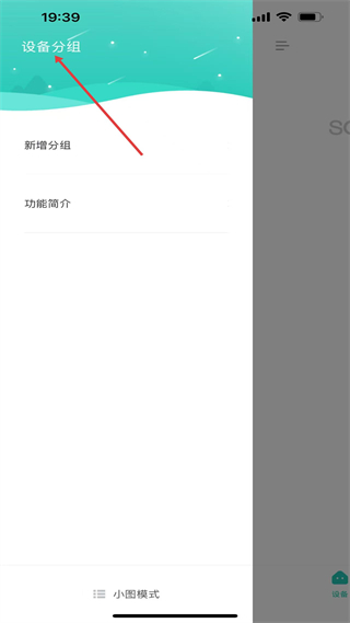 1、設備分組界面,有新增分組、功能簡介選項,底部有小圖模式標識,用于對設備進行分組管理,方便用戶歸類設備。