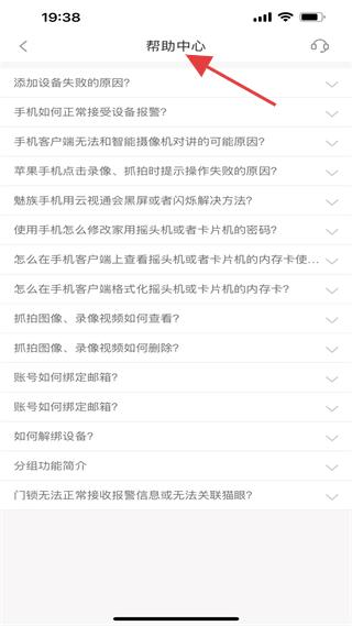 3、使用幫助界面,列出設備離線、門鈴提示未收到等常見問題,為用戶解決設備使用疑惑提供指引。