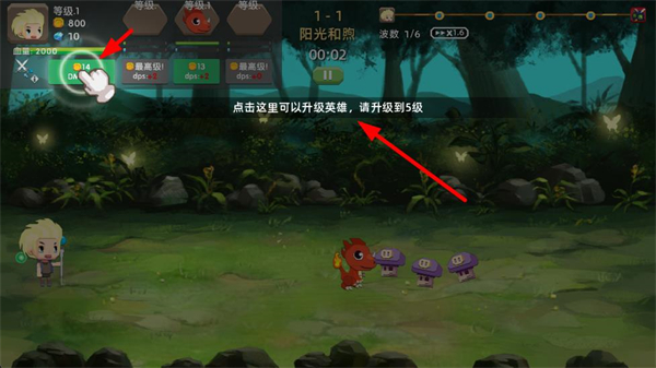 3、在戰斗過程點擊升級英雄,提升英雄等級和戰力,增強攻擊和生存能力,應對更強怪物挑戰。
