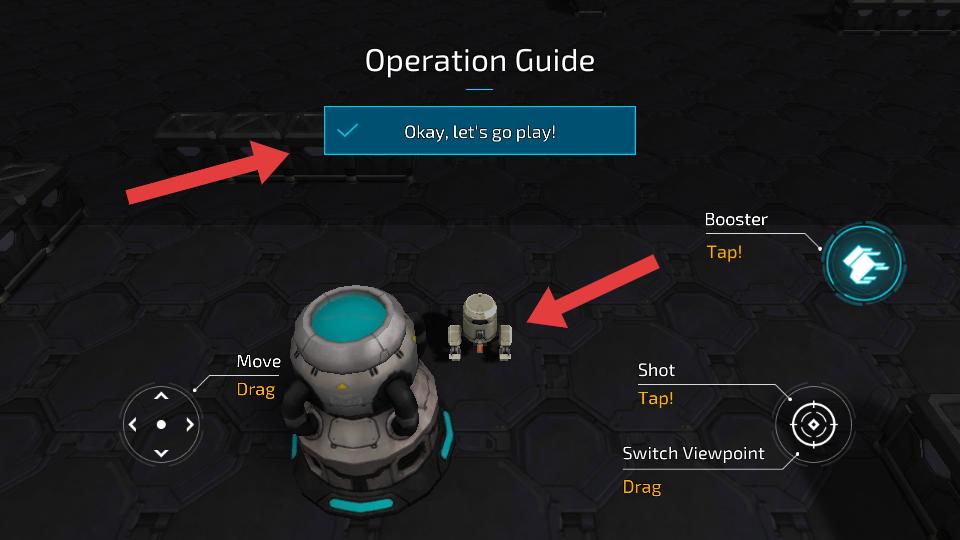 2、進入操作指南界面,了解移動,射擊,使用推進器,切換視角等操作,點擊Okay,let is go play開始游戲。