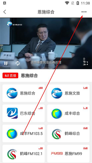 3、在電視直播頁面選擇恩施綜合頻道觀看直播,點擊右上角的三個點按鈕分享。