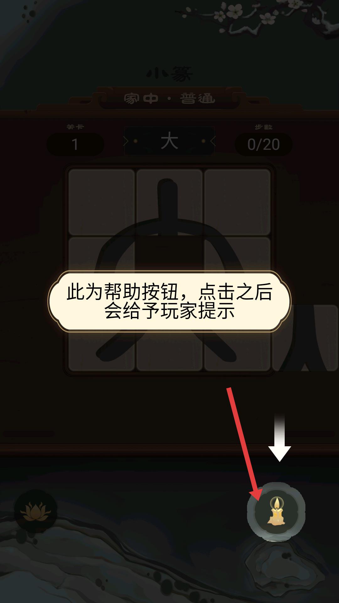 2、游戲中有提示字,比如大,玩家要依據簡體字,聯想下方字體的樣式,通過對提示字的理解,來推進字體相關的游戲環節。