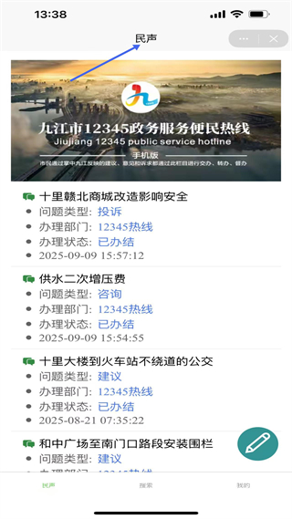 4、民聲板塊展示九江市12345政務服務便民熱線的投訴、咨詢、建議辦理動態,呈現市民訴求辦理情況。