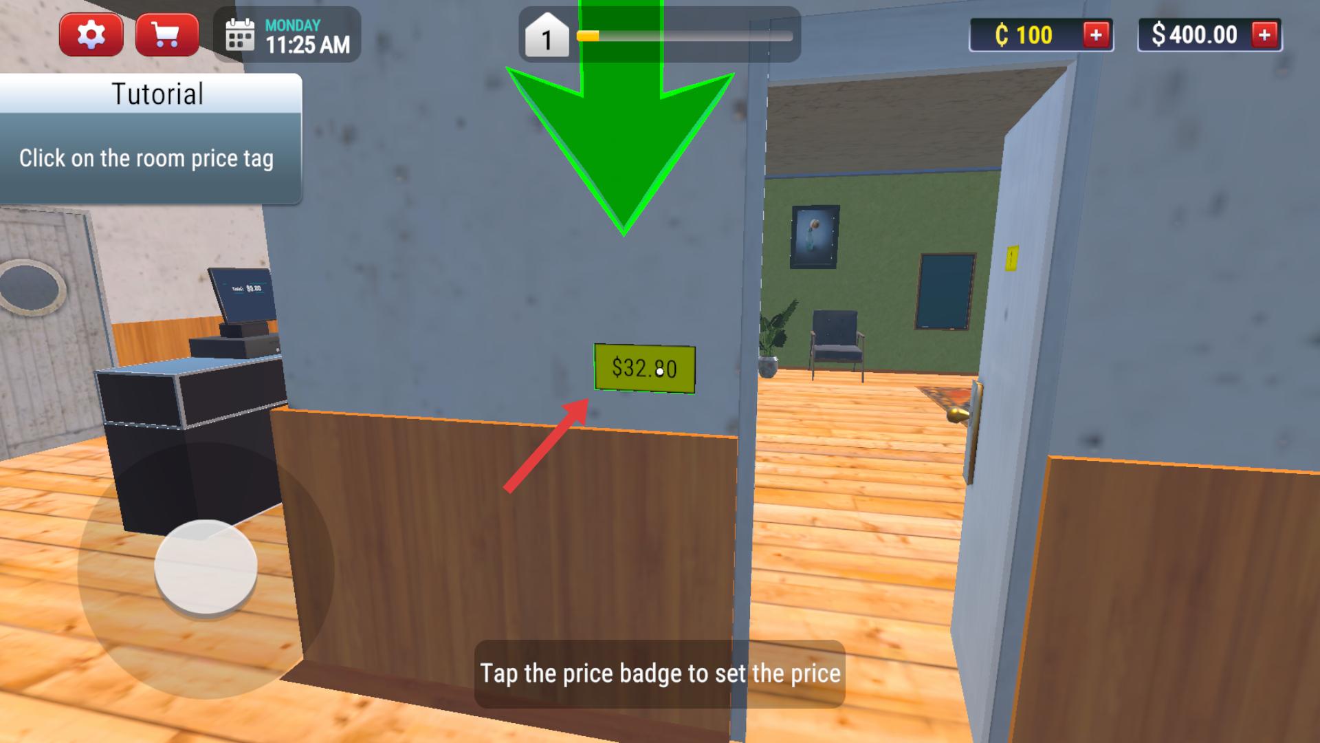 3、清潔完成后,點擊房間的價格標簽,設置房間價格,這一步是為了后續酒店經營做準備,合理設置價格能助力酒店運營。