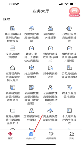 3、業務大廳頁,分類呈現公積金提取業務,覆蓋購房租房等場景,滿足不同用戶的業務辦理需求。