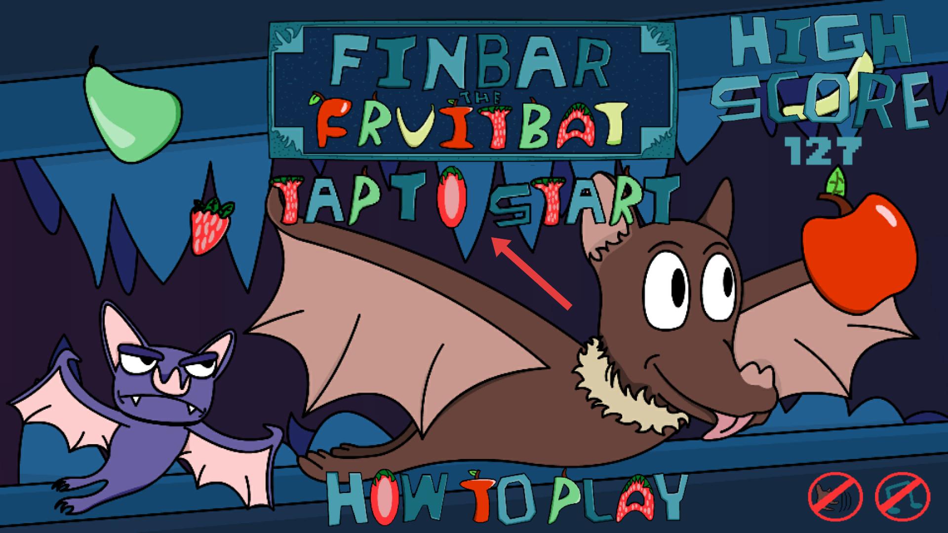 1、游戲初始界面有游戲標題,下方點擊開始提示是開始游戲的關鍵,點擊即可操控果蝠開始游戲,開啟收集水果的旅程。