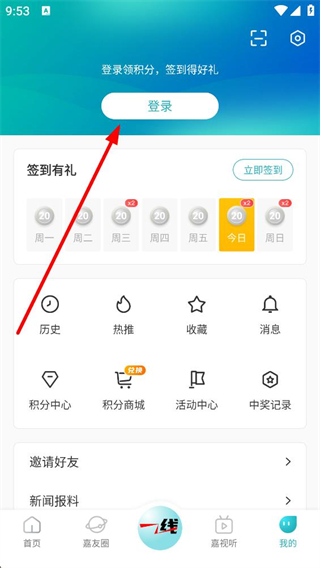 2、點擊底部我的進入個人中心,可看到登錄按鈕,還能使用簽到有禮、歷史、熱推等功能,參與簽到獲取積分兌換福利。