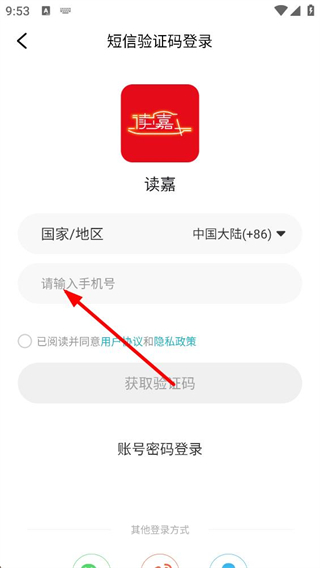 3、個人中心點擊登錄后,進入短信驗證碼登錄界面,需選擇地區、輸入手機號,勾選協議后獲取驗證碼完成登錄、注冊。