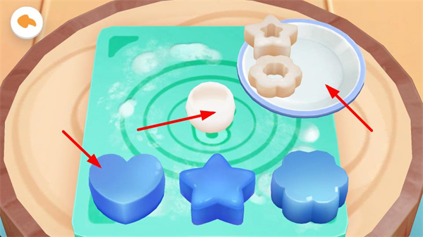 4、選擇對應的模具,將圓球材料放入模具里進行塑形,得到特定形狀的甜品部件,再將塑形好的部件放入容器備用。