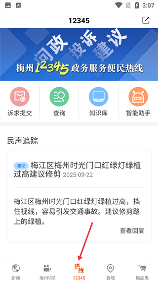 3、熱線12345板塊,提供訴求提交等功能,有民聲追蹤展示市民建議,方便用戶政務咨詢和訴求反饋。