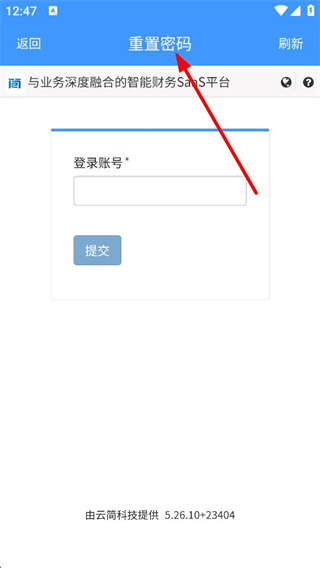 4、進入重置密碼頁面,需在登錄賬號輸入框填寫對應賬號信息,填寫完畢后點擊提交按鈕,即可推進密碼重置的流程。