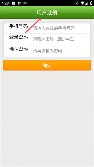 1、進入界面找到用戶注冊區域,填寫手機號碼登錄密碼確認密碼,確保信息符合要求后,點擊確定按鈕完成賬號注冊。