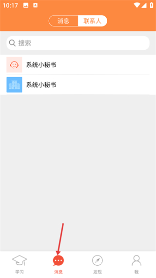 3、消息頁包含消息和聯系人分類,可查看系統通知與溝通內容,及時獲取學習相關的各類提醒與信息。